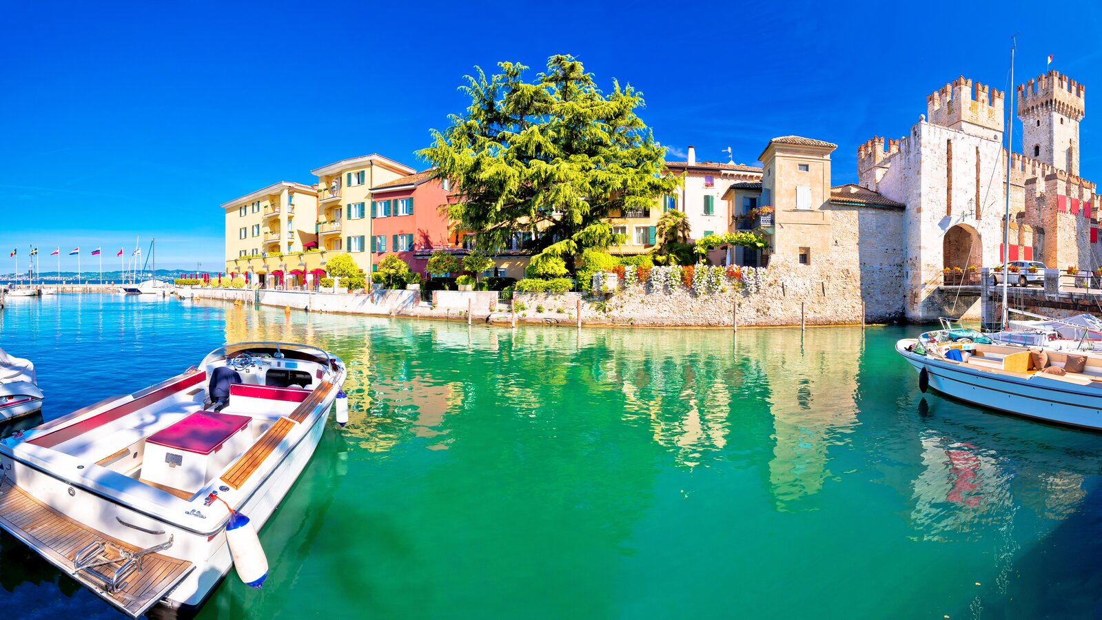 Nur knapp 30 Autominuten von Castel d’Azzano sind es bis zum südlichen Ufer des Gardasees (auch: Veroneser See), einem der größten und atemberaubendsten Seen Italiens. Dieser ist für sein kristallklares Wasser, seine charmanten Städtchen und wundervollen Landschaften bekannt. Sirmione am südlichen Ufer etwa ist berühmt für die mittelalterliche Scaliger-Burg, die Thermalquellen und die malerische Altstadt. Bardolino ist bekannt für seine Weinproduktion, den charmanten Hafen und die Restaurants am See. Die Stadt Garda selbst bietet am Ostufer eine Mischung aus Geschichte, Natur und einen wunderbaren Panoramablick vom Fels Rocca di Garda.