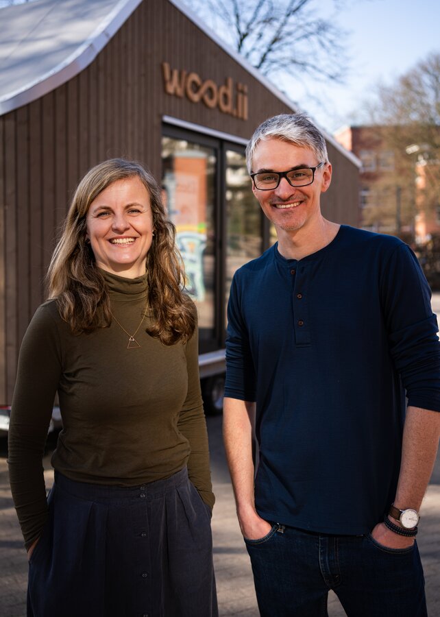 Als sich Robert Böker und Kamila Pasko auf einem Klassentreffen wiedersehen, erzählt Kamila von ihrer Idee: ein kleines Gebäude, das als Lernraum dient und in dem Kreislaufwirtschaft nach Cradle to Cradle für Kinder und Jugendliche erlebbar wird. Robert, der Kraftfahrzeug-Mechatronik an der TU in Dresden studiert hat, ist direkt begeistert. So gründen die beiden im Dezember 2021 die gemeinnützige Organisation WoodenValley GmbH in Verantwortungseigentum.