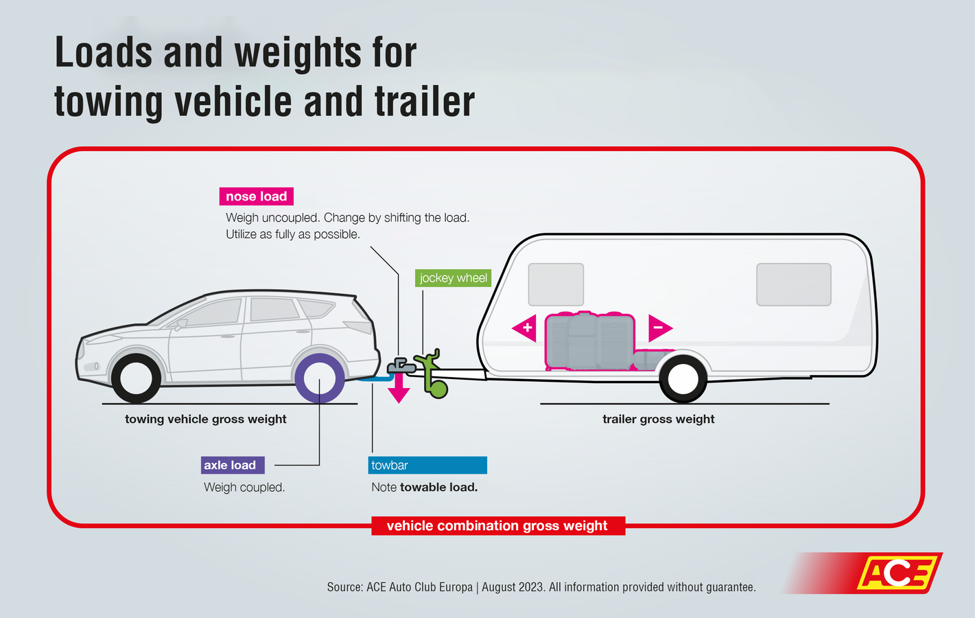 This number relates to the towing vehicle in a vehicle combination and describes the weight of the caravan’s drawbar pulling on the ball head of the towing vehicle’s towbar. The nose load can be measured using a nose load scale or an integrated scale on the jockey wheel. It can be calculated using the following formula: