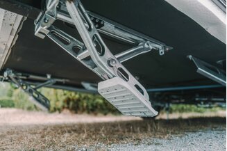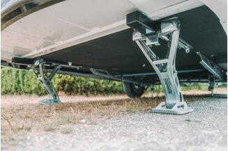 Il sistema LevelC, completamente automatico, livella la caravan grazie a due cilindri idraulici montati sull'assale e quattro supporti angolari lungo l'asse longitudinale e trasversale. In questo modo, il veicolo si trova in una stabile posizione orizzontale nel giro di pochi minuti. I sei piedini idraulici sono collegati al telaio del veicolo e all'assale tramite piastre di montaggio. Un algoritmo intelligente impedisce che vengano esercitate forze di torsione sul telaio del veicolo che potrebbero danneggiarlo.